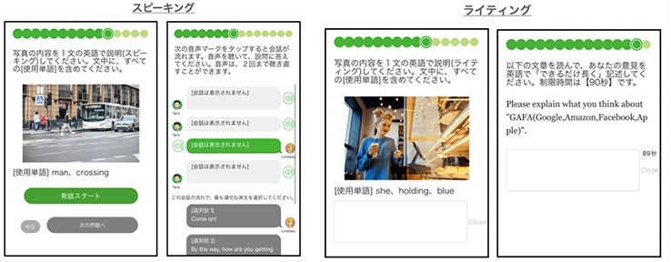 今回の大幅バージョンアップに伴い、スピーキング力/ライティング力のチェックは、写真を見て話す(情景描写)・英作文をする・会話表現を聞き取って適切な返事を選択する問題が出題されるようになりました。