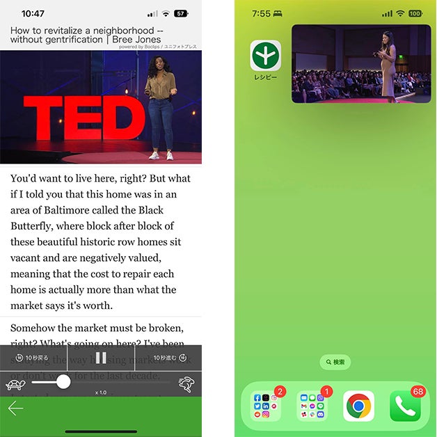 ⑤ 動画を再生しながら別の作業を行うことができる「ピクチャ・イン・ピクチャ」機能にも対応しています。