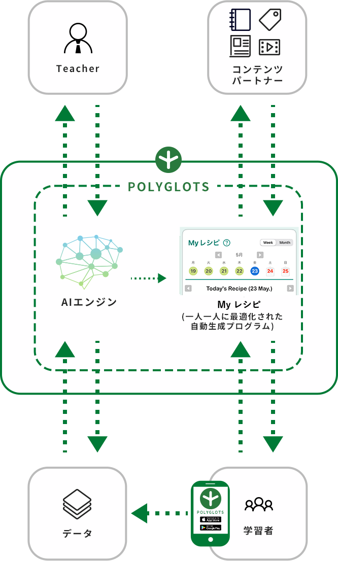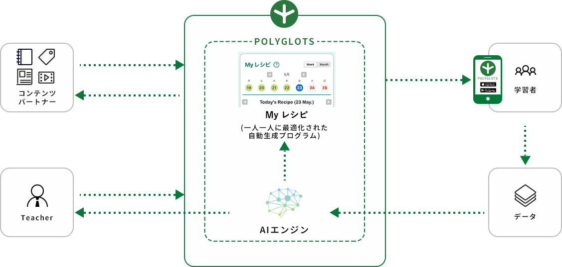 AIの力により、個々の英語力、個々のスキルレベルに合わせた学習内容を日々のカリキュラムとして自動生成することで、より効率的な学習を提供することが可能です。