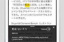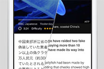 If you find an unknown word when you read an article, tap the word and it will be shown in Hiragana and English. This enables you to understand an article even if there are many kanji you cannot yet read, while helping you improve your kanji study at the same time.