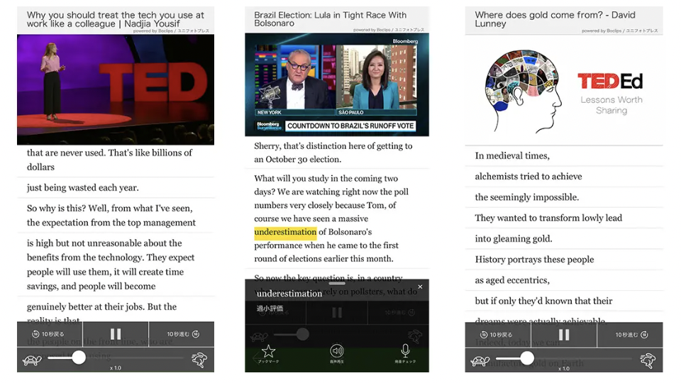 AIがあなたのレベルや興味に応じた学習カリキュラムを作成。世界中の英語ニュースを使って情報収集するように学習が可能。