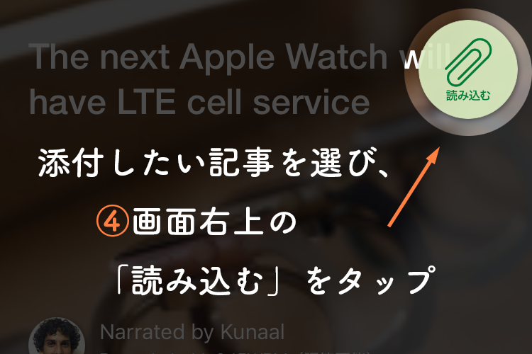 画面左下の+マークを押すと、メッセージに添付できる項目が表示されます。質問したいことがある記事や、参考画像を添付しましょう。