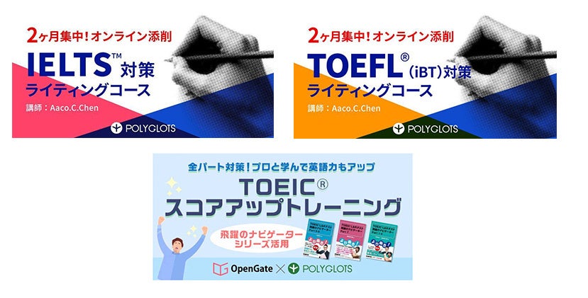 短期集中でTOEIC®︎全パートのトレーニング方法や、TOEFL / IELTSのライティング対策をオリジナル模擬問題の添削でしっかりレベルアップが可能です。